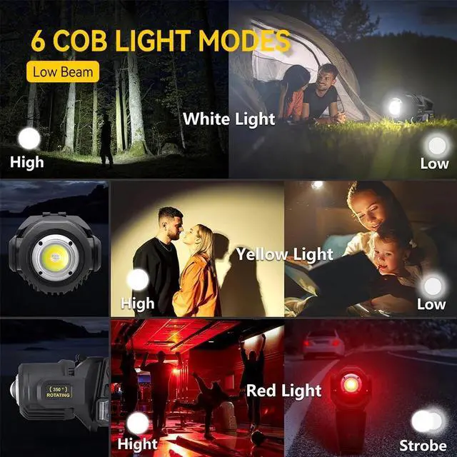 3. Nine lighting modes: With nine lighting modes, you can customize the surrounding environment according to your preferences. You have high-beam options (high, medium, and strobe), and low-beam options that include different levels of white (high and low), yellow (high and low), and red (high and low). and strobe). Just a quick press to switch between modes. If 10 seconds have passed, press again to turn off the spotlight flashlight.