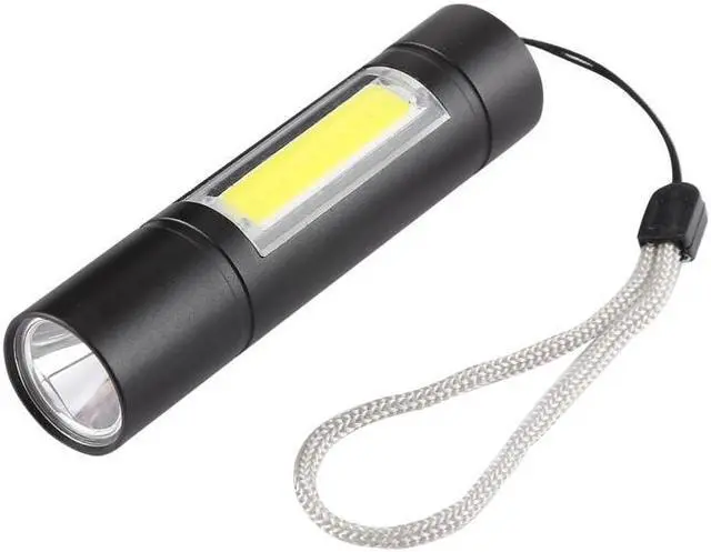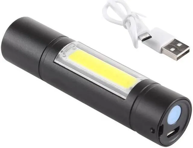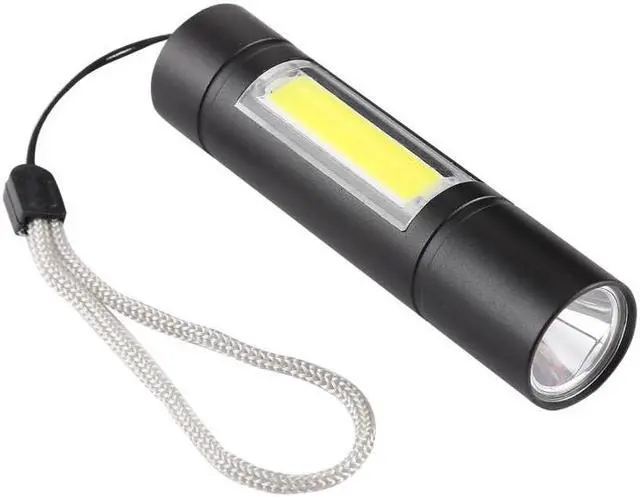 1. 5W XPE main light source, high brightness, low energy consumption, lasting lighting time. 2. 3W side COB LED lamp, is perfect for night work. 3. 3 modes: strong XPE light / strobe XPE / strong COB 4. Powered by built-in rechargeable battery (Micro USB charging port) 5. Suitable for outdoor, night fishing, camping, emergency maintenance lighting etc..