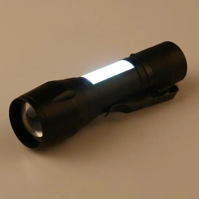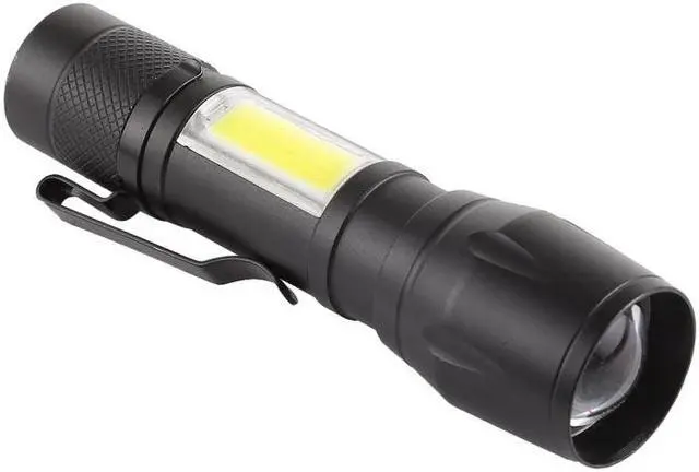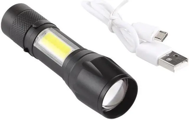 1. 5W XPE main light source, high brightness, low energy consumption, lasting lighting time. 2. 3W side COB LED lamp, is perfect for night work. 3. 3 modes: zoomable XPE light / strobe XPE / strong COB 4. Powered by built-in rechargeable battery (Micro USB charging port) 5. Suitable for outdoor, night fishing, camping, emergency maintenance lighting etc..