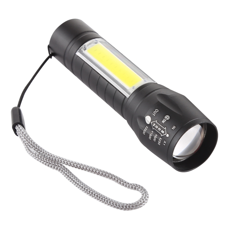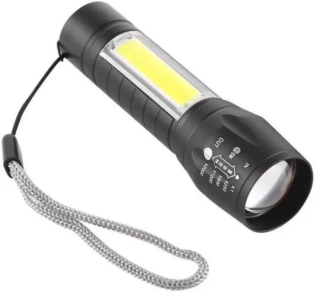 3. 3 modes: zoomable XPE light / strong COB / strobe COB