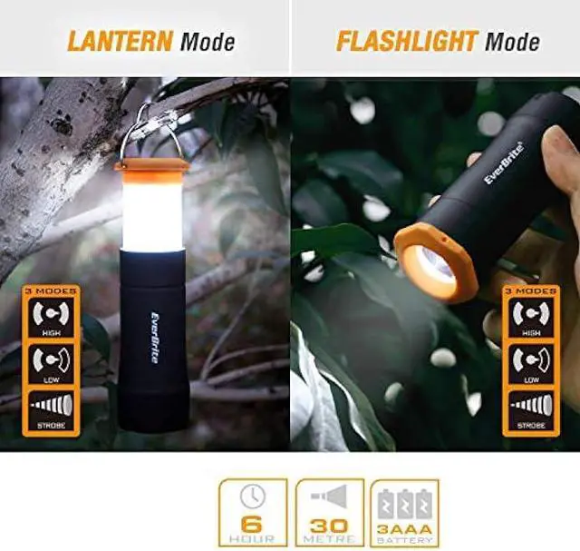 Removable Hook - High-lumen LED camping lamp designed with a removable hook that can be attached to both sides of the lantern for your convenience. They also allow for multifunctional use: you can hang it from a tent, carry it with you, or stand it on a flat surface, the ground, or a table. It is powered by 3 x AAA Alkaline batteries (included).