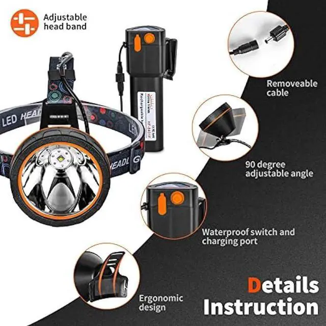 Two Light Mode Super bright Headlamp: Two light mode (High/Low) provide the different brightness light to meet your various needs. Super bright and low power consumption LED. It provides high lumen brightness, the light distance up to 3280 ft (about 1000M). The LED life up to 10000H, which eliminates the trouble of replacing the bulb.