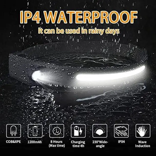 230° Wide Angle Lighting & 350Lumen - This rechargeable wide beam headlamp provides 230° wide-angle lighting. You can get a wide range of lighting coverage without moving your head. The super bright LED XPE light on the side can provide a lighting distance of about 150 feet.