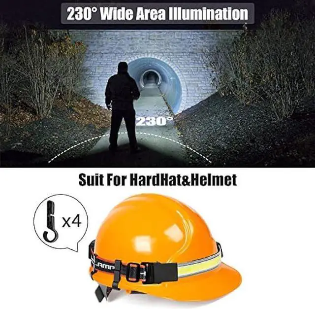 230°Wide-Beam Illumination, See All of Your Surroundings ---The rechargeable headlamp provides a 230° wide are of illumination instead of only lighting up a small area in front of you. The wide-beam angle 230° is most fit to the human eyes, Its easy to see everything in your vision, dont have to move head to illuminate the desired area frequently. Easy to see all of your surroundings.