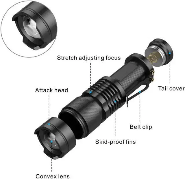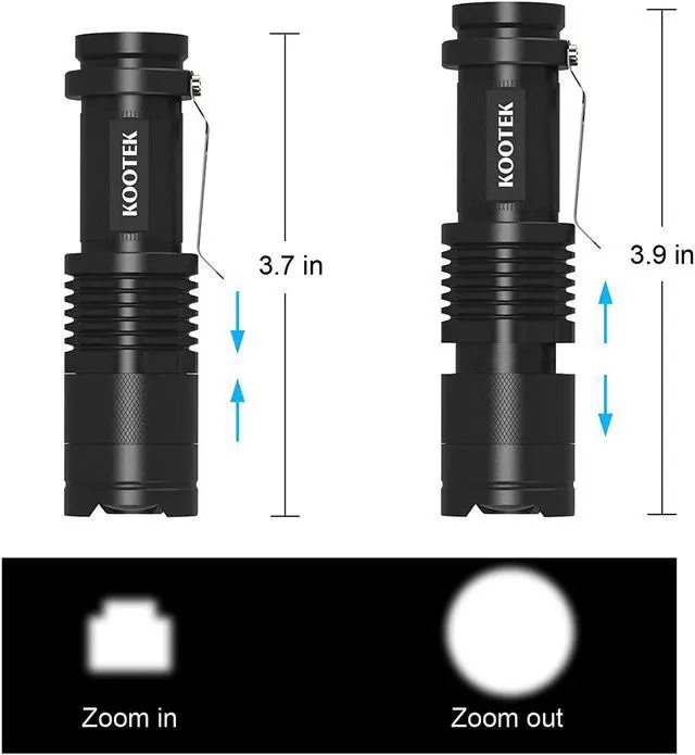 Zoomable Focus: Stretch the flashlight to adjust focus for long distance observation or outdoor large area illumination.