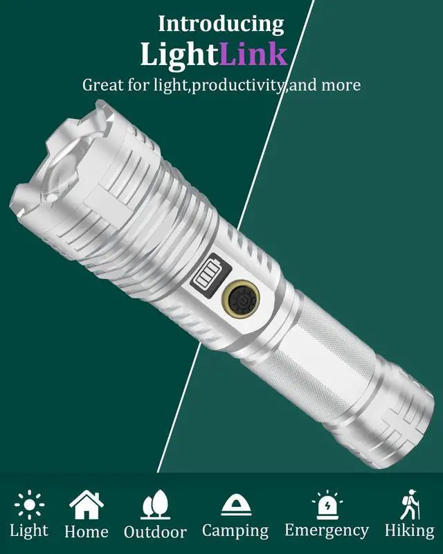INTRODUCING LIGHTLINK - The rechargeable flashlights with Driverwish features high focusing beam light that' s great for bedrooms/living room/barhroom and outdoor camping spaces. Home improvement is an essential tool, this technological updating rechargeable flashlights enough to blend in and mighty enough to stand out.