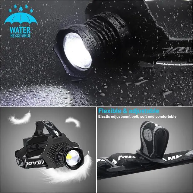 Zoomable & 5 Lights Modes: BUD K High lumens headlamps with 5 lighting modes: Strong / Medium / Low / Flash / SOS, Zoomable headlamp to achieve zoom light, Rechargeable headlamp can emit large area of floodlights or spotlights. It is safe, reliable and easy to use, it is the perfect flashlight for camping, climbing, hiking, hunting, exploring