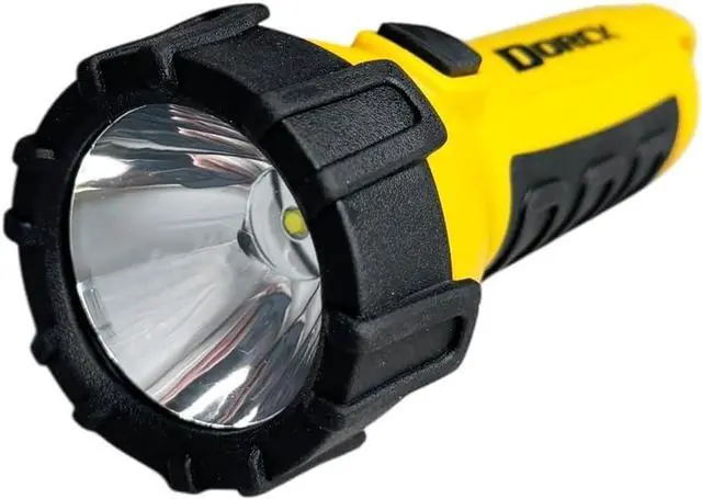 Super Bright 200 Lumen LED FlashlightDurable impact resistant construction with shock absorbing rubber17 hours of run time on 3 AA batteries (included) 200 lumens of power with a 67 meter beam