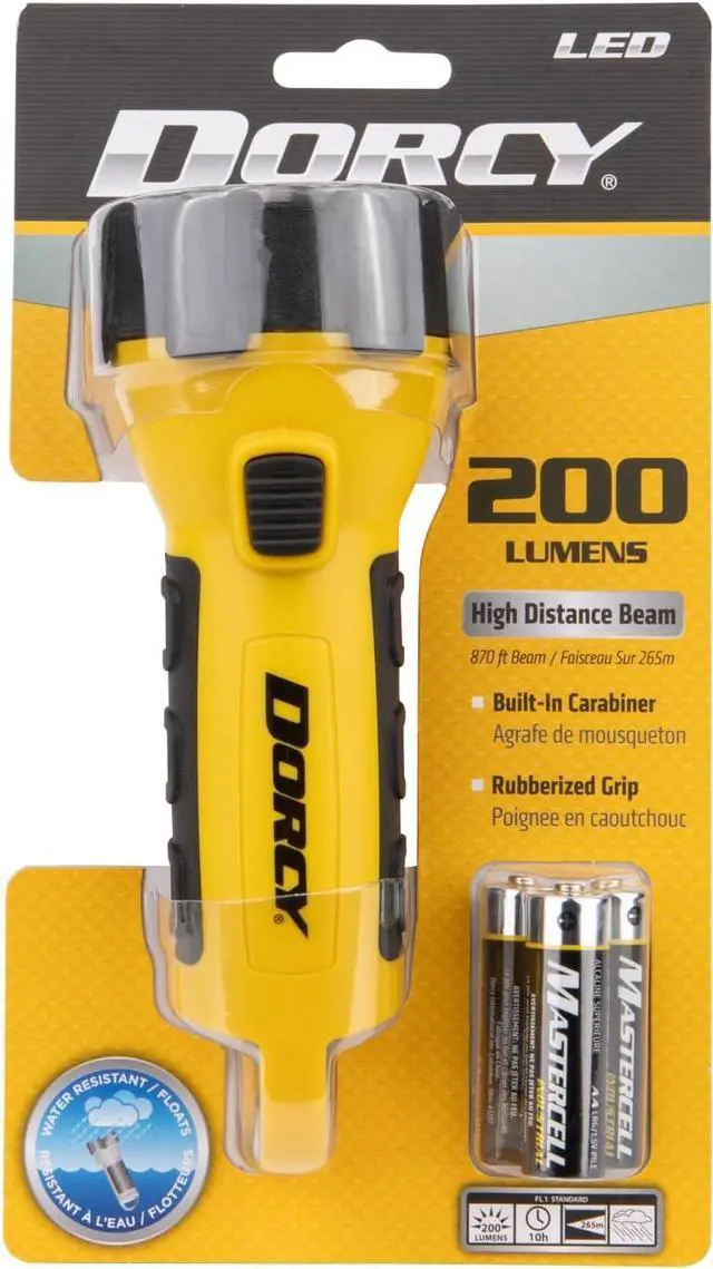 Dorcy 41-2521 Water Resistant Battery Powered Floating LED Flashlight with Carabiner Clip Ideal for Camping and Outdoors Bright Yellow