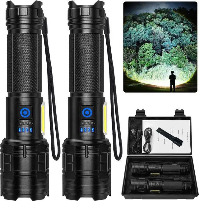 NOTE: Do not immerse this bright flashlights high lumens directly into water or discard the dust cover of the charging port. Package | Gift - You will get 2× rechargeable flashlights(2× bttery included) 2× USB cables 2× lanyards 1× user manual and a gift box. This powerful flashlight is a perfect gift for men women family and friends for Christmas birthday or other special occasions. Let Us Know - 7*24 hours after-sales service. We have carefully checked all the tactical flashlight before delivery and made sure the product works properly. If you have any problems please do not hesitate to contact us. We are responsible for replacing all quality related issues.