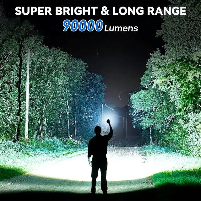 990 000 High Lumens Flashlights - ALSTU bright flashlights are equipped with a super bright P 90.9 LED chip to produce high lumens brightness. With high powered flashlight meeting your various illumination needs lighting large area or long distance for home emergencies camping. Rechargeable flashlights - 8-15 hours long lasting time. Equipped with an upgraded 5 000? Ah rechargeable ATTERY ALSTU LED flashlight lasts up to 15 hours in low brightness mode. Fast ChargingPower Indicator - 4 hours fast charging. Flashlight rechargeable equipped with intelligent charging interface charging efficiency increased by more than 30% and over-voltage over-current protection.