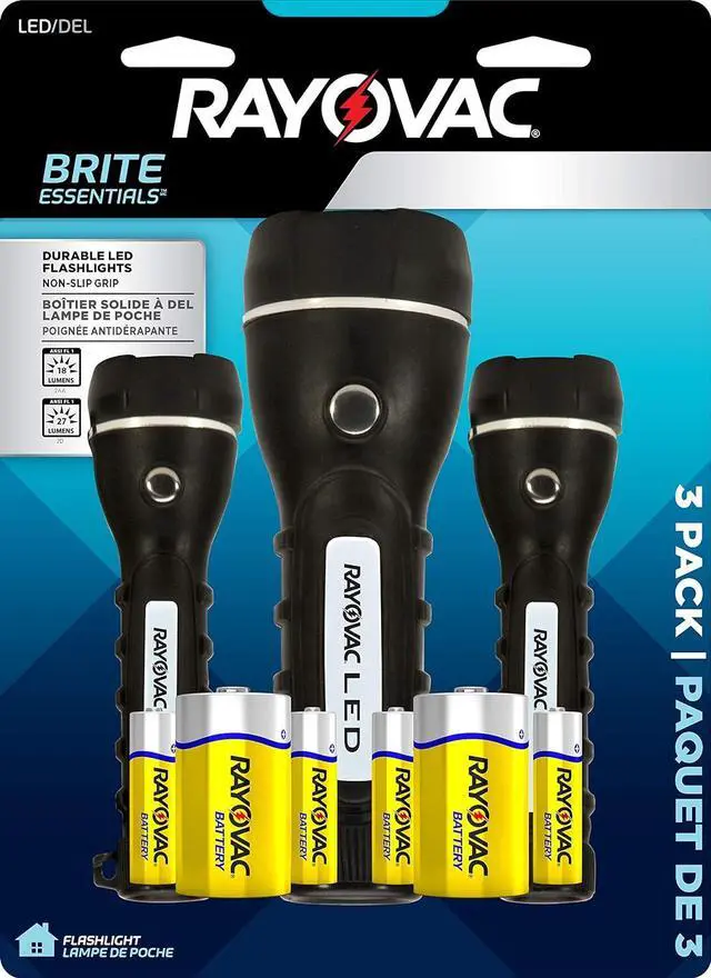 PackBATTERIES INCLUDED: Two D batteries and four AA batteries are included with your purchase powering the entire 3 PackLEDs last 50 000 hoursDurable rubberized construction sure grip bodyInclude two D and four AA sized heavy duty batteriesIncludes one 2D flashlight and two 2AA flashlights2D flashlight has 5 LEDs and 2AA flashlights have 3 LEDs