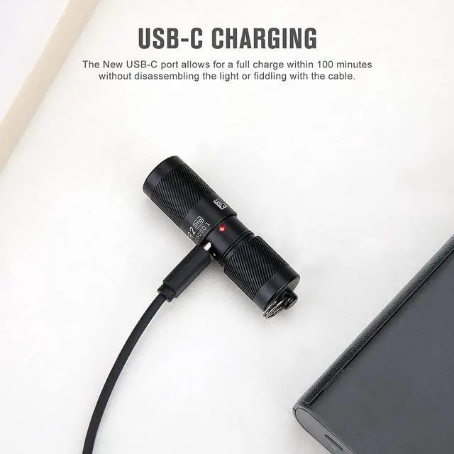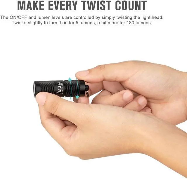 [High Performance] The CSP LED paired with a TIR optic lens generates a max output of 180 lumens 48m 20% higher than i1R 2[New Charging Type] Adopts the new USB-C port instead of the old Micro-USB port which makes charging easier[Lightweight and Small] It is almost unnoticeable on your keychain with the 2.02 in length and the weight of 0.78 oz[Easy to Operate] Switching with a simple twist of its head. Twist it slightly to turn it on for 5 lumens a bit more for 180 lumens[Fast Charging] New USB-C port allows for a full charge within 100 minutes without disassembling the light or fiddling with the cablePLEASE FEEL FREE TO CONTACT US IF ANY FURTHER PROBLEMS WITH OUR PRODUCTS