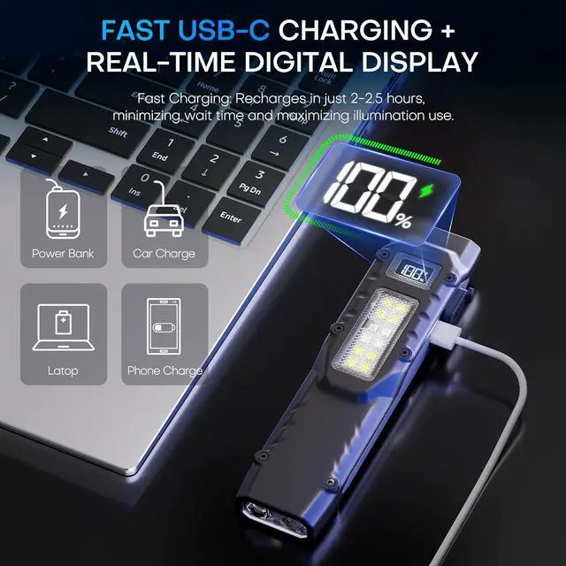 1500 Lumen LED Flashlight Bright Long-Range and SOS Ready The powerful flat flashlight delivers up to 1500 lumens and a beam distance of 200 meters. Switch between High Low Turbo (double-click) and Strobe (long press). SOS mode offers visibility in emergencies. Ideal flashlight for Home self-defense and camping. Dual Switch Tactical Control Separate Access for Main & Side Light This tactical flashlight features two independent buttons: one controls the main LED beam the other activates the side light. Whether you need a pocket flashlight for daily carry or a tactical EDC flashlight for emergencies it ensures instant accesseven with gloves. Versatile Side Light White Red UV & Red Strobe for Safety & Utility The side COB light provides white light for work red light for night visibility and UV light for stain or ID inspection. A double-click activates red flashing for alerts. A truly multifunctional edc flashlight designed for utility safety and tactical applications. USB-C Fast Rechargeable Flashlight with Digital Power Display Stay powered up with USB-C fast charging via car adapter power bank or laptop. The built-in digital screen displays battery percentage and charging status. Say goodbye to dead batteries and guessworkthis is a rechargeable flashlight you can count on. IPX6 Waterproof Shockproof & Durable Stainless Steel Build Built for harsh conditions this tactical edc flashlight features a premium stainless steel body resists corrosion 2-meter drop resistance and IPX6 waterproofing. Whether used as a small flashlight for daily tasks or a flashlight for emergencies it delivers toughness you can trust.