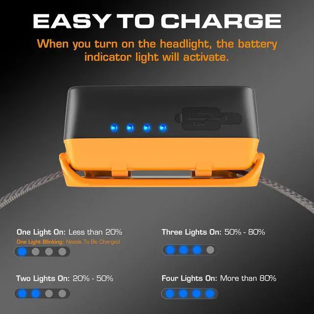 Rechargeable & Long Lasting: Up to 5 hours (Medium-beam mode) of powerful, non-diminishing brightness from the included one premium rechargeable 1500 mAh Li-ion battery. Additionally, it has a power indicator, allowing you to easily keep track of the remaining power.