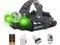 BORUIT Outdoor Headlamps, Equipped With LED Main White Light and 2 LED green Side lights, 2 Rechargeable Battery, USB cable, three head charger and car charger.