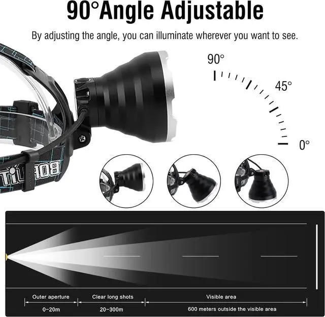 4-Mode Versatility: Switch seamlessly between High (6H runtime), Low (12H), Strobe (8H), and SOS modes via a one-button control. The 90° adjustable head ensures precise beam positioning while maintaining hands-free versatility for helmets or headbands.