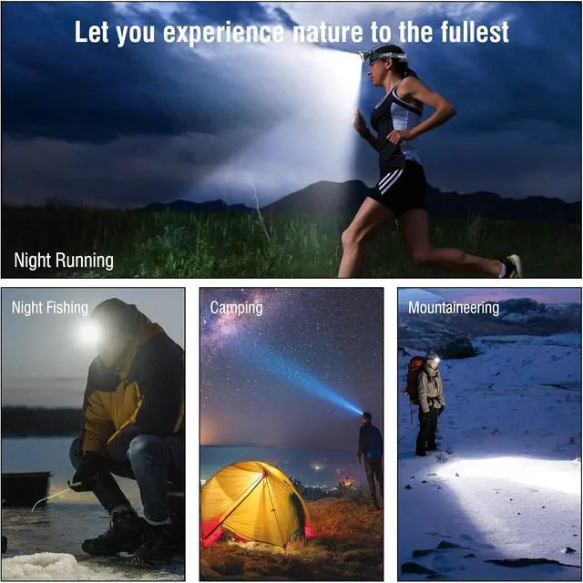 BORUIT Rechargeable LED Headlamp: Outshine competitors with professional-grade LEDs enough to illuminate trails, campsites, and rugged terrain. Engineered for durability, our high-output design ensures reliable performance in demanding conditions.