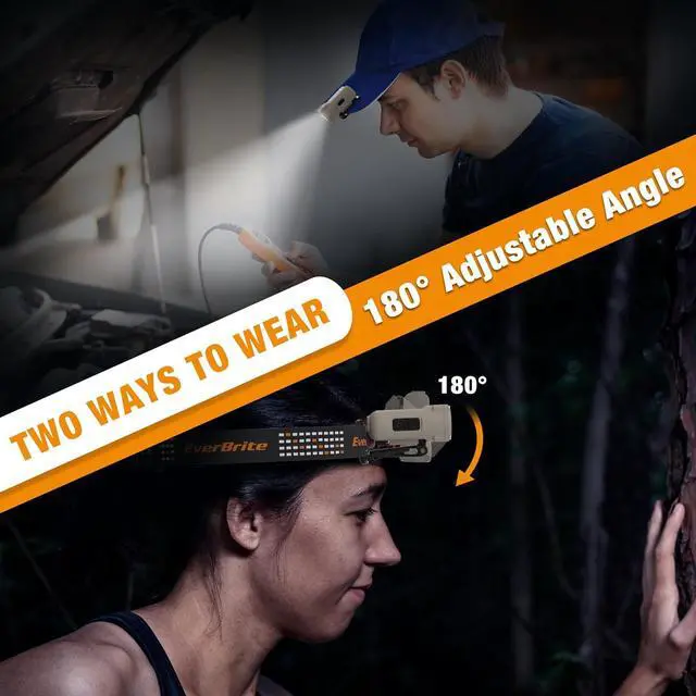 HAT CLIP & WEAR ON HEAD EverBrite Adjustable head lights for forehead support both clipping on hard hats/helmets or clothes and wearing on head, freeing your hands while playing or working on projects. 180-degree angle adjustment design lets you place light flexibly where you need it. The removable and washable headband is comfortable to wear for adults and kids.