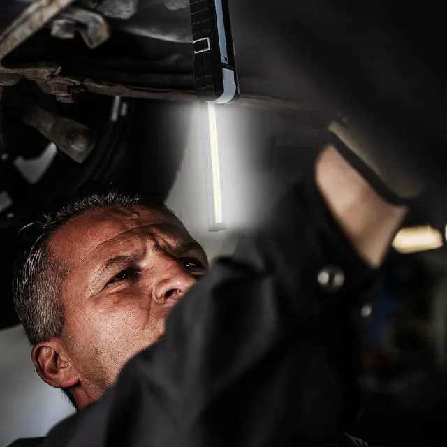 HANDS-FREE MAGNETIC BASE & HANGING HOOK DESIGN Work smarter with built-in strong magnets and an integrated fold-out hanging hook, allowing you to easily mount or suspend the light for hands-free operation. Attach it to metal surfaces like car hoods, electrical panels, or scaffolding, or hang it from nails, branches, or hooks for convenient lighting wherever needed.
