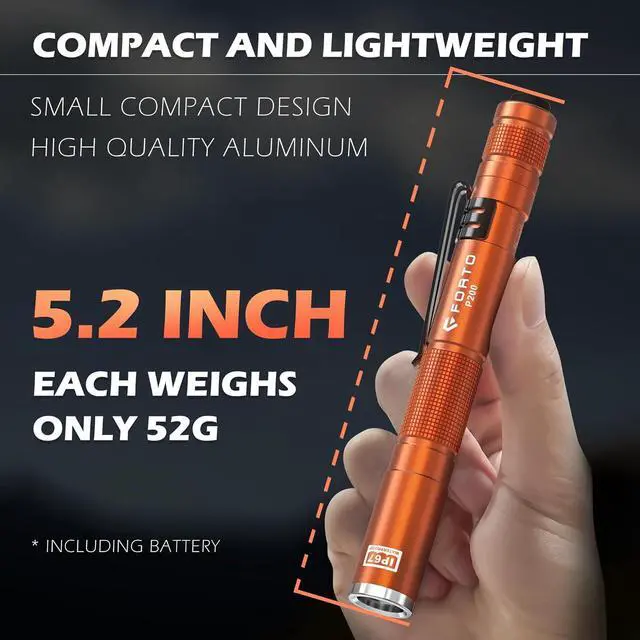 Durable & Impact ResistantBuilt with military-grade aluminum, FORTO pocket flashlight is not only waterproof but also impact-resistant up to 1 meter, ensuring they can handle rough conditions and accidental drops without losing functionality.