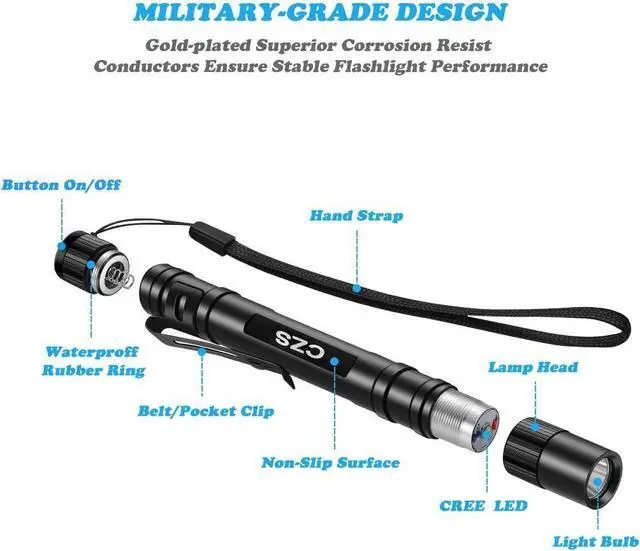 Clip on Flashlight: Comes with a clip, the pen light could also be used as cap light for your convenience. Easy to clip to your belt, remove it if you don' t need it.