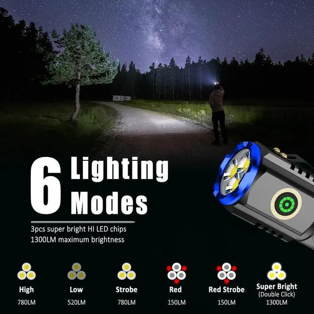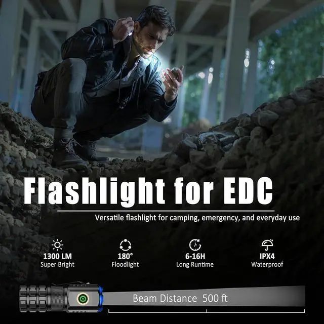 Personalized EDC Flashlight: The mini flashlights adopts 3pcs super bright HI LED Chips, maximum brightness up to 1300lm, with lighting distance up to 500 feet beam, and lighting angle up to 180 degrees, easily light up an entire room. A perfect emergency flashlight for home, outdoor, camping, hiking, night walking, fishing, and power outage.