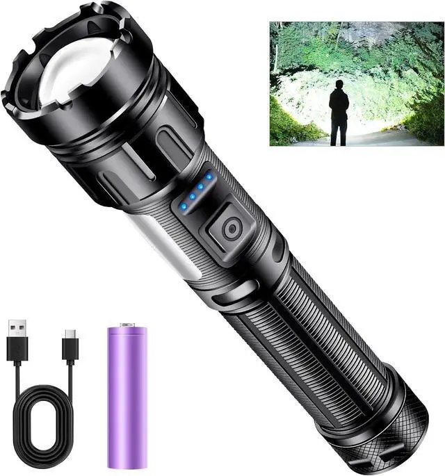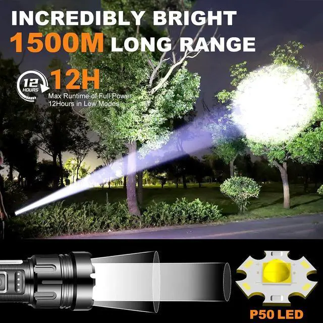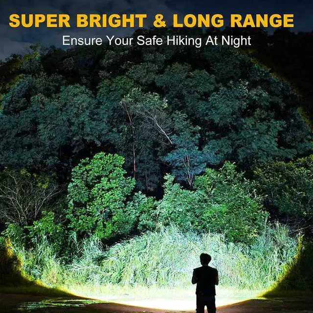 Bright FlashlightLed flashlight rechargeable output is up to 1200 lumen bright white light, large-area irradiation and irradiation distance, with a long lifespan of 10 hours. Perfect for everyday use, like dog walking, camping, emergencies.