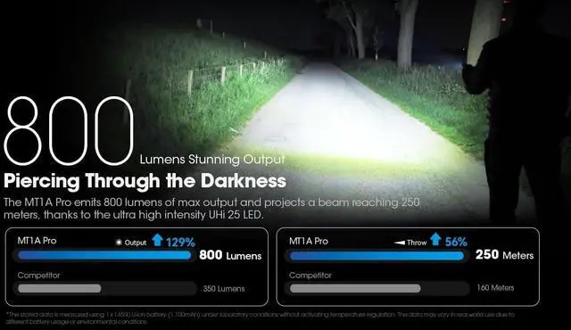 POWERFUL EDC FLASHLIGHT - The Nitecore MT1A Pro penlight delivers a bright beam of up to 800 lumens with a range of 273 yards.