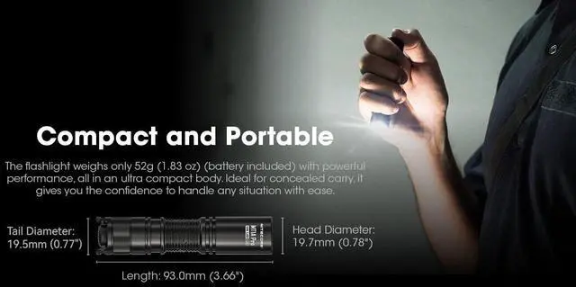 BUILT FOR EDC CARRY - Weighing just 1.83 ounces with a battery, this small flashlight is highly portable and can easily fit in your pocket or use the clip for easy carrying.