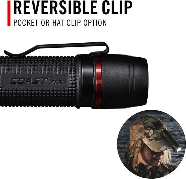 REVERSIBLE POCKET CLIP: Securely stow the flashlight when not in use, or attach the clip at the opposite end of the handle to use it as a hands-free mount.