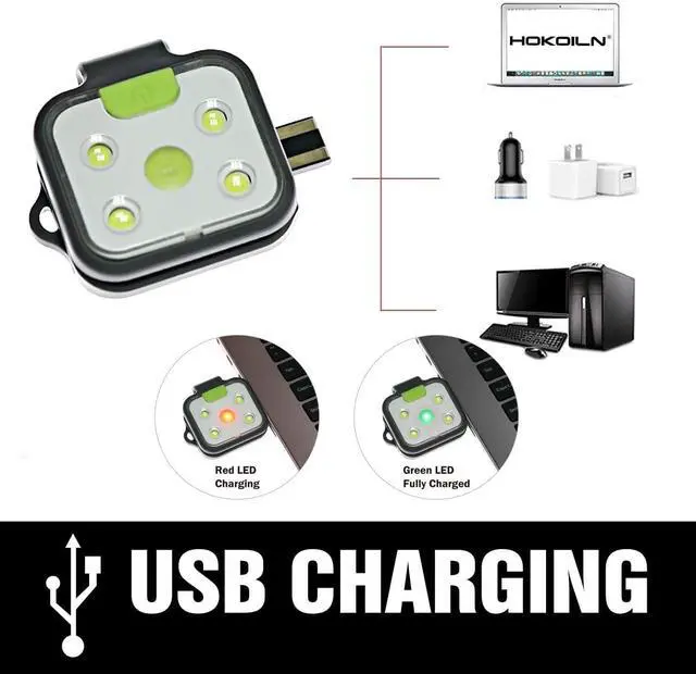 Fast Charging & CordlessEquipped with an integrated USB plug at the rear, this clip-on flashlight charges directly via any USB-A portno cable needed. Just plug it into your laptop, power adapter, or other USB outlet and it fully charges in just 1.52 hours. This running lights for runners feature a built-in rechargeable battery, so you wont have to keep buying replacements. While charging, the indicator light shows red; when fully charged, it turns green, so youll always know when its readyespecially handy during power outages