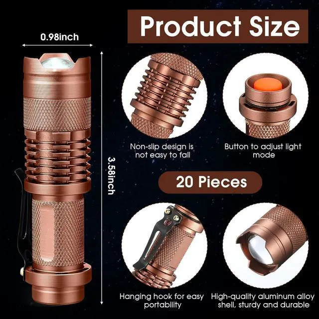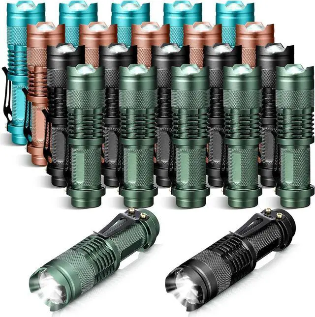 What You Will Receive: the package contains 20 pieces of zoomable led flashlights in black, green, brown, blue color, the LED flashlight is powered by 1 AA battery (not included), which are sufficient to meet your needs for daily activities and sharing
