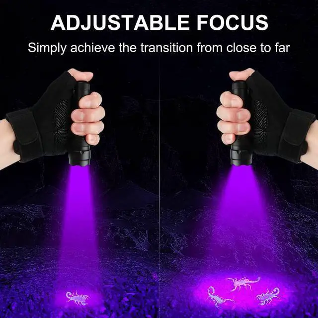 Extreme Power UV Blacklight Flashlight: Professional grade UV flashlight black light, used the newest model UV LED Chip, 395-405 nm, UltraFire UV black light is 30% Brighter than other lights, helps you to find urine&stains EVEN in indoor or streetlight, best choice for pet dog cat urine detection.