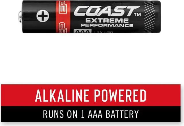DISTANCE: 36-meter beam for up to 40 minutes on a single AAA alkaline battery