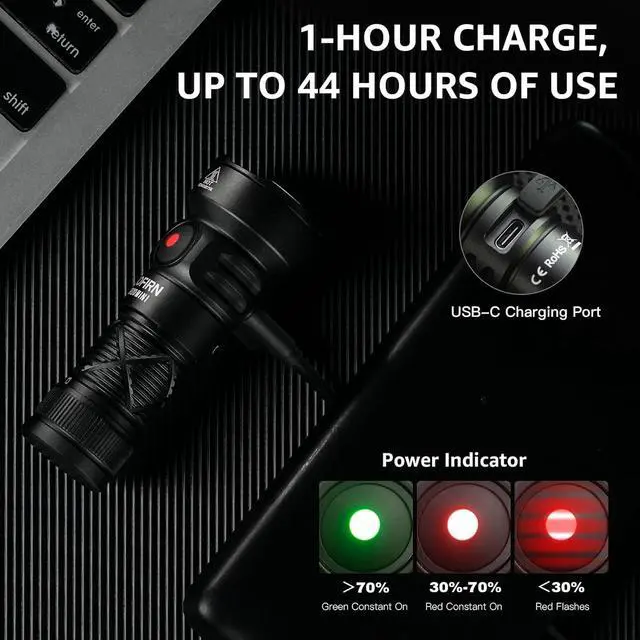 Type-C Rechargeable for Quick Charging: The small flashlight has a USB Type-C port for fast, efficient charging. Use the included cable to easily recharge, keeping your flashlight ready for everyday carry and outdoor adventures.