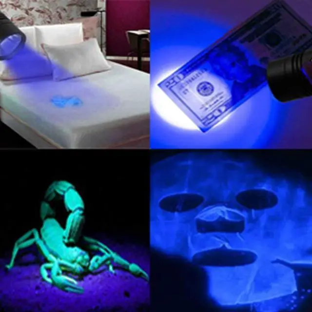 395NM UV Flashlight: The led flashlight with black light, and provide Professional Grade 395 nm UV light can be used for object detection. Perfect detector for pet urine, kitchen stains, bathroom stains, stains on floor/carpets, or just on any fabric. It is a helpful tool for mineral collecting, curtain stain finding, jewelry identifying/searching, currency/card/license/passport authenticating, geocaching, automotive oil/gas leakage, and etc.