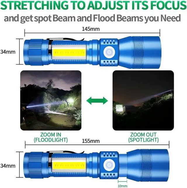 Flashlights Rechargeable: This led flashlight with a rechargeable and a USB cable, Allows being safely charged from any USB port, such as a computer, power bank, car charger, etc. Fully charged can work for 8 hours. Flashlight life up to 2900 days. Durable and super affordable.