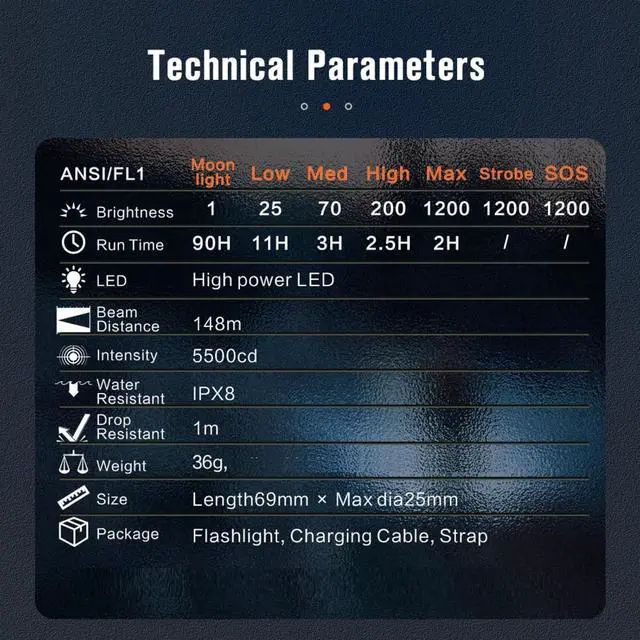 Compact and lightweight: weighs only 1.98 ounces including batteries. The flashlight measures only 2.72 inches in length and 0.98 inches in diameter. It is an edc gear for everyday carry. You can carry it conveniently in your bag or pocket. It is perfect for walking the dog at night, looking for your keys at the door or searching things in the car. Strobe mode and SOS mode can be activated accordingly in different situations.