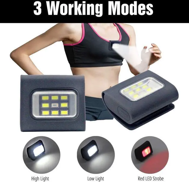 Lightweight & PortableMeasuring just 2.1 × 1.7 inches and weighing only 1.7 oz, this clip on running light is easy to take anywhere. Slip it into your pocket or clip it to your jacket, hat, or bag for quick access. Its ultra-light design won' t weigh you downideal for early morning walks or anytime you' re on the move, especially for jogging in low visibility