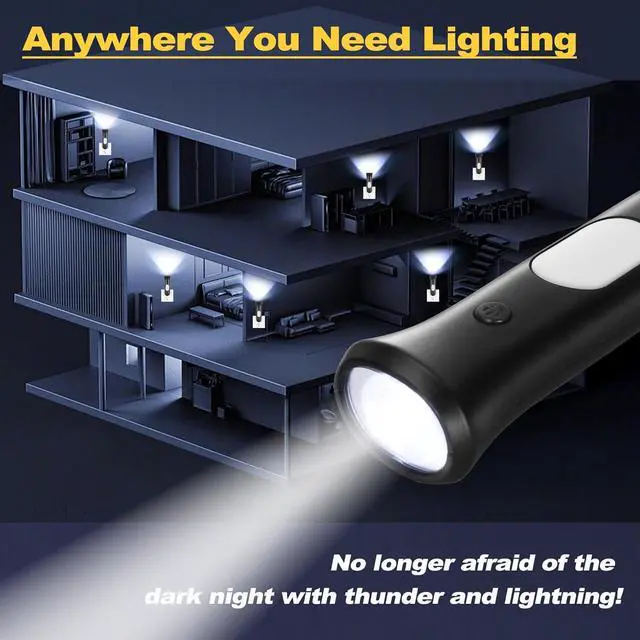Versatile Multi-Function Design: More than just an emergency light, this versatile flashlight doubles as a standard flashlight, nightlight, and even a table lamp. Perfect for kitchens, bedrooms, bathrooms, basements, stairways, hallways, or garagesanywhere you need reliable, convenient lighting