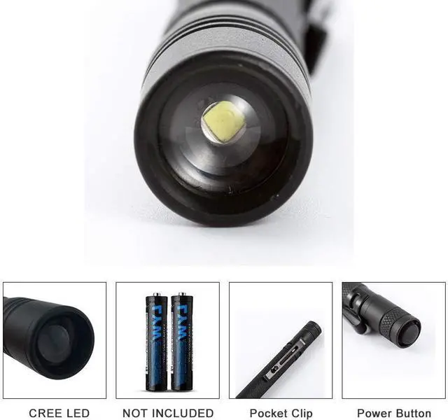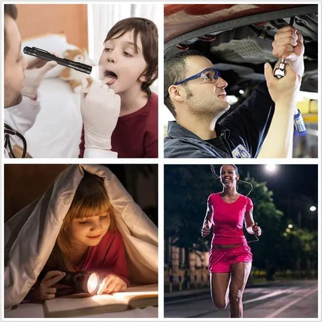 VERSATILE PEN LIGHTThis 5.4 inch LED penlight, weighing just 1.2 oz, is extremely lightweight & robust. Equipped with 150 lumen and 2 AAA batteries (Not Included), perfect for using as a medical inspection light or reading, after-dark walks, camping, hiking, repairing, power outage, etc.