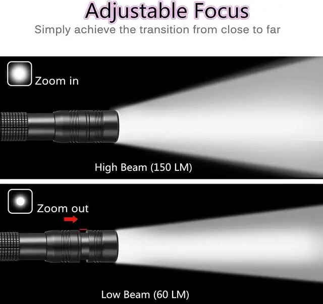 BRIGHT & ZOOMABLE150-lumen (max) LED sweeps bright light and reaches nearly ft. Fully zoomable from wide to narrow beam. Comes with 3 useful settings (High/Low/Strobe). It' s a great tool for workers to inspect, work, repair, ideal for indoor and outdoor activities.