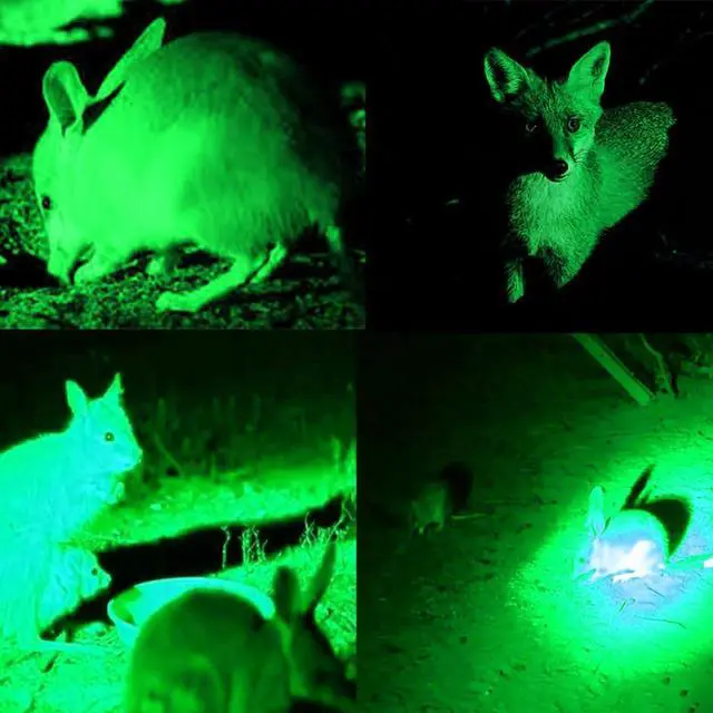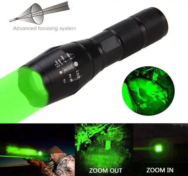 Green Hunting LightAnimal is not sensitive to green light and not spooked by green light. Green LED flashlight is very is perfect for night predator hunting, helpful for hunting wild boar, coyotes, hogs, foxes, varmints, coon, deer, nakes, and etc in the dark. you can get clear vision at night and observe the natural behavior of animals from a distance without spooking them.