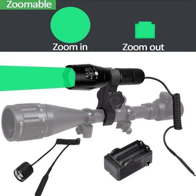Completed Green Hunting SetGreen hog light flashlight is made of aircraft-grade aluminum alloy, slip-resistant, shockproof, hunting light.