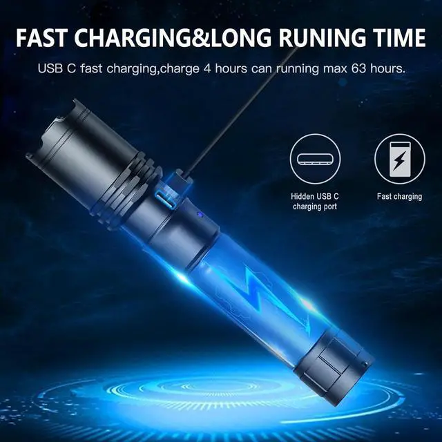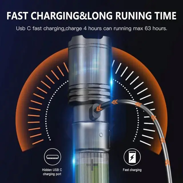 Hidden USB-C PortUSB-C fast charging, compatible with computer, phone adapter, or any USB socket, convenient to charge, and high efficiency. Rotate the barrel head to expose the charging port before charging. The charging interface is completely hidden in the barrel when it is not charging, waterproof, dust-proof, and corrosion-resistant, making the interface more durable
