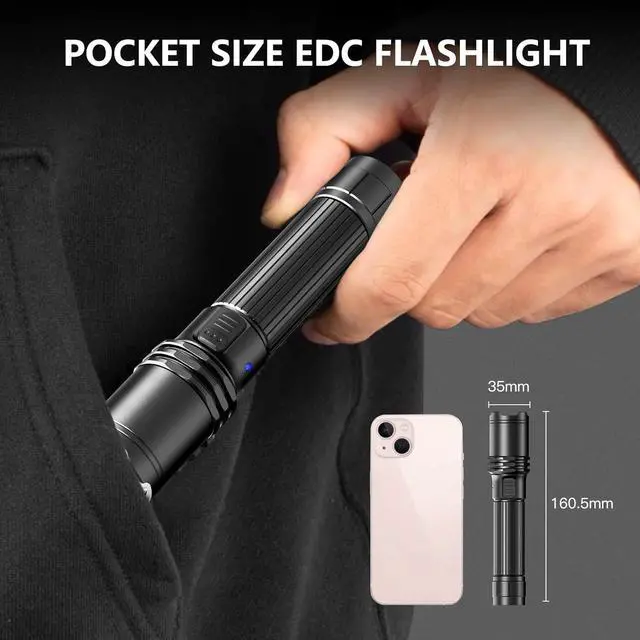 Easy-to-Use Dual ButtonsOur flashlight has two side buttons for simple control. One is for normal use, and the other gives instant access to a strobe light for emergencies. Both buttons are large and separate, making them quick and easy to find