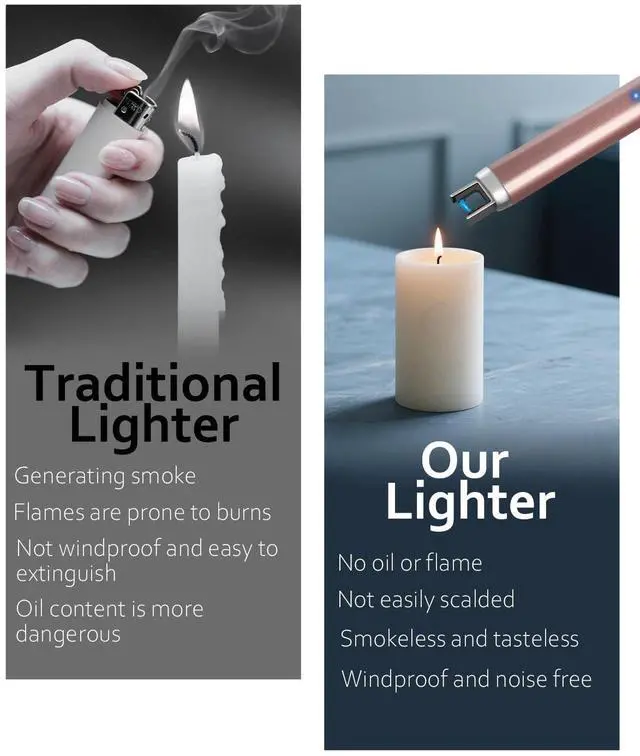 Long lighter adopts flameless arc technology, can be used for strong wind or other bad conditions which is perfect for outdoor use.