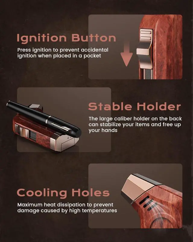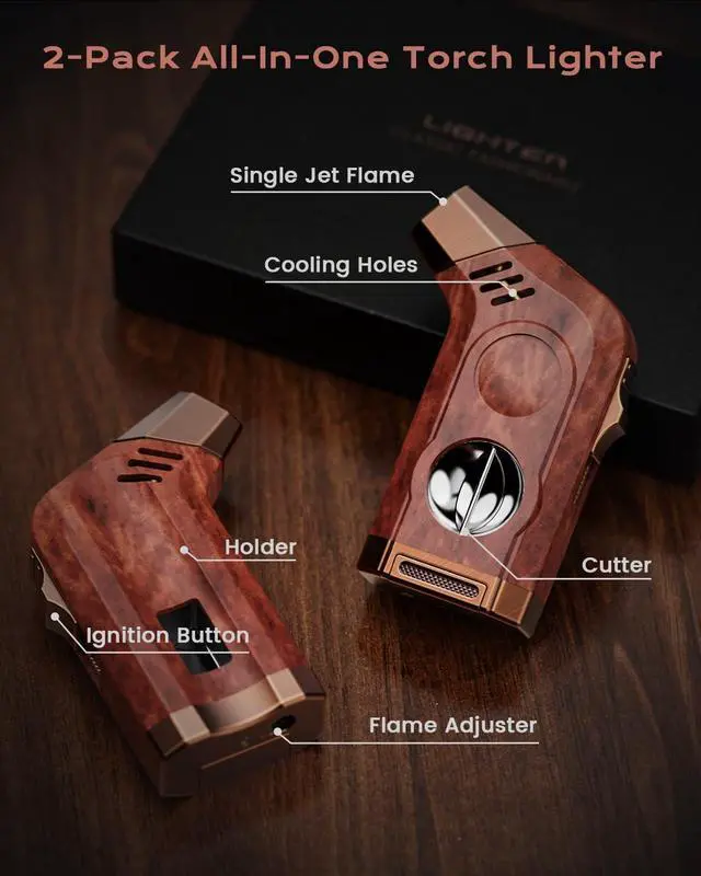 1. The retro appearance of the torch lighter also combines windproof jet flames, a tool, a holder, and cooling holes