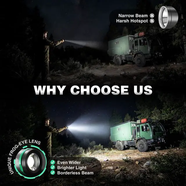 Zoom for Any Task - Twist to adjust from a wide, borderless flood beam to a focused long-range spot. Ideal for flashlights for home, dog walking, camping, and emergency useone light, no compromises.